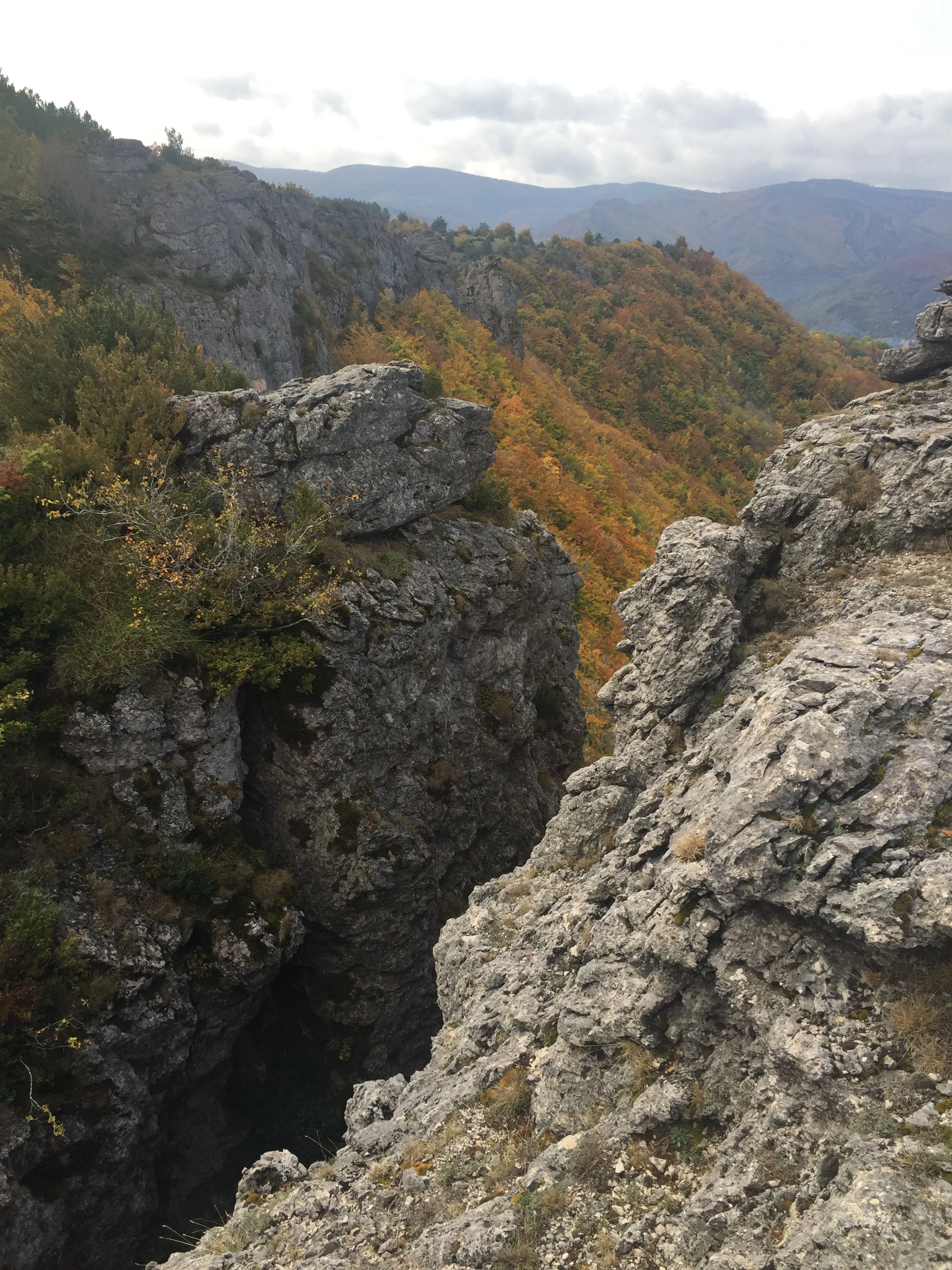 The steep valleys hold secret waters in the folds: karstic caverns; gourgas (laid-stone grottos).